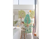 Dječja flis tapeta za zid, motivi stabala u nijansama tirkizne, zelene i smeđe, izgled i tekstura tkanine. Što će vas oduševiti: visoka otpornost i perivost. Dizajn: dječji, prirodni.