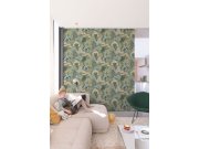 Flis tapeta s vinilnom površinom, bijela podloga, motiv oblačića u nijansama zelene, plave, tirkizne i oker boje, zrnasta tekstura. Što će vas oduševiti: visoka otpornost i perivost. Dizajn: dječji.