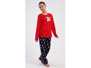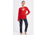 Dječja pamučna duga pidžama Medo sa šalom. Djevojačka pidžama sastoji se od majice s dugim rukavima i dugih hlača. Majica s okruglim izrezom ukrašena je slikom plišanog medvjedića. Ovaj motiv se ponavlja i na hlačama, koje u struku imaju gumu i vezicu za stezanje, nemaju džepove. Korišteni pamučni materijal je podatljiv i ugodan na dodir.