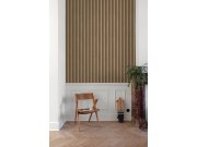 Kvalitetna smeđe-bež flis tapeta s vinilnom površinom i nježnom zrnastom površinom koja vjerno imitira lamelnu zidnu oblogu. Što će vas oduševiti: vjerna imitacija drvenih lamela. Dizajn: moderan, eklektičan, 3D.