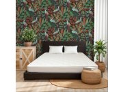 Crna flis tapeta za zid, motivi listova i čaplji u nijansama zelene, ciglaste i oker boje.
