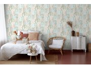 Flis tapet na zid, motivi cvijeća u nijansama zelene, tirkizne, opečnato crvene i bež. Nježna grublja tekstura.
