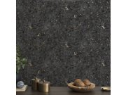 Flis tapeta s vinilnom površinom, crna štuk podloga, zlatno mramoriranje.