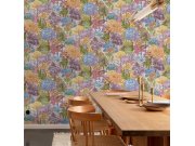 Flis tapeta s vinilnom površinom, motiv šarenog cvijeća, nijanse ružičaste, plave, ljubičaste, crvene i zelene, nježna tekstura. Što će vas oduševiti: visoka otpornost i perivost. Dizajn: prirodni.