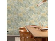 Flis tapeta s vinilnom površinom, motiv stabala, tekstura tkanine, nijanse zelene, sive i oker boje. Što će vas oduševiti: visoka otpornost i perivost. Dizajn: prirodni.