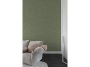 Zelena polusjajna strukturirana flis tapeta za zid. Fotografija interijera je samo ilustrativna.