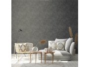 Luksuzna flis tapeta s vinilnom površinom, nijanse polusjajne tamno sivo-srebrne boje, autentičan izgled tekstilije – izmjena reljefnih dijelova i tekstilne strukture.