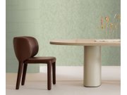 Luksuzna flis tapeta s vinilnom površinom, plastični motivi listova u nijansama polusjajne zelene i sivo-zelene boje, grublja tekstura tkanine. Fotografija interijera je samo ilustrativna – moguća odstupanja u boji.