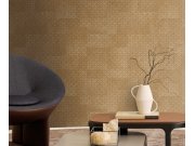 Luksuzna flis tapeta s vinilnom površinom, polusjajna podloga u smeđim nijansama, sitniji plastični brončani kvadratni uzorak, nijanse stvaraju plošni geometrijski uzorak.