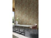 Luksuzna flis tapeta s vinilnom površinom, podloga grublje smeđe-zlatne tkanine, polusjajni bogat cvjetni uzorak.