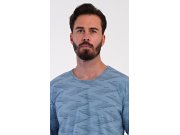 Muška duga pamučna pidžama Arnošt. Muška pidžama sastoji se od majice s dugim rukavima i dugih hlača. Majica s okruglim izrezom ima otisnut geometrijski uzorak. Jednobojne hlače imaju u struku gumu, vezicu za stezanje i praktične džepove. Korišteni materijal s udjelom pamuka 100% je podatna i ugodna na dodir.