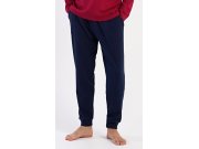 Muška duga pamučna pidžama Bowling. Muška pidžama sastoji se od majice s dugim rukavima i dugih hlača završenih rubovima. Majicu s okruglim izrezom na prsima krasi slika kugli za bowling i natpis BOWLING. Jednobojne hlače imaju u struku gumu, vezicu za stezanje i praktične džepove. Korišteni materijal INTERLOK sa 100% udjelom pamuka je podatna i ugodna na dodir.
