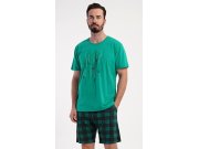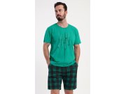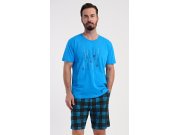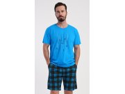 Muška pamučna pidžama sa šorcem Tetris. Muška pidžama se sastoji od majice s kratkim rukavima i kratkih šorceva. Majicu s okruglim izrezom na prsima krasi slika igre Tetris. Majicu upotpunjuju karirani šorcevi koji u struku imaju gumu, vezicu za zatezanje i praktične džepove. Korišteni materijal sa 100% udjelom pamuka je ugodan i mekan na dodir.