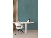 Polusjajna zgužvana sivo-plava flis tapeta za zid. Fotografija interijera je samo ilustrativna – boje se razlikuju.