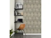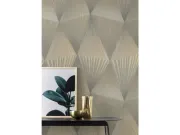 Paleta tamnih, metalno sivih i zlatnih tonova daje prostoru sofisticiran i elegantan izgled. Zahvaljujući ritmičnom rasporedu geometrijskih oblika, ova tapeta savršeno pristaje modernim, minimalističkim ili luksuznim interijerima – od stilskih ureda do reprezentativnih hodnika ili dnevnih boravaka. Metalni akcenti i reljefna struktura stvaraju ekskluzivan vizualni efekt koji se izvrsno kombinira s jednostavnim, modernim namještajem i neutralnim površinama.