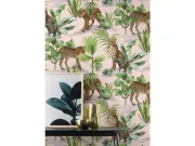 Svijetla pješčana pozadina naglašava dubinu boja i ističe svaki detalj uzorka, čineći zidove toplima i vibrantnima. Ova tapeta donosi tropski, luksuzni i inspirativni ugođaj koji je idealan za dnevne boravke, spavaće sobe ili prostore za opuštanje. Savršeno se kombinira s drvom, ratanskim namještajem, zlatnim akcentima i prirodnim tekstilima, stvarajući interijer pun karaktera i stila.