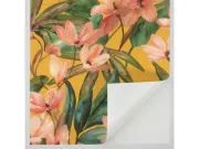 Zahvaljujući dinamično raspoređenim cvjetovima i listovima, tapeta stvara dojam pokreta i prirodne raskoši. Savršeno se uklapa u moderne, boho ili tropske interijere te unosi toplinu i vedrinu u dnevne boravke, spavaće sobe ili kreativne prostore. Ova tapeta idealna je za sve koji žele prostor ispunjen bojama, životom i inspiracijom.