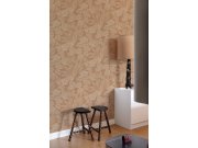 Smeđa flis tapeta za zid, smeđe-bež cvijeće i listovi.