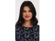 Ženska pamučna kućna haljina s dugim rukavima Isabela. Kućnu haljinu s okruglim izrezom i džepovima krasi print perja. Korišteni pamučni materijal je ugodan i mekan na dodir.