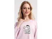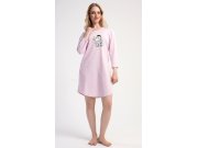 Ženska pamučna kućna haljina s tročetvrt rukavima Magarac. Kućna pamučna haljina s okruglim izrezom ima praktične džepove, a na prsima je ukrašena slikom magarca. Korišteni pamučni materijal je ugodan i mekan na dodir.
