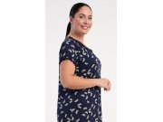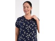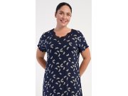 Ženska noćna košulja s kratkim rukavima Butterflies. Noćna košulja ugodne dužine do koljena ima rebraste detalje na rukavima i donjem rubu, a izrez je ukrašen čipkom. Tkanina košulje je oslikana sitnim leptirićima. Korišteni viskozni materijal s dodatkom likre je ugodan i podatak na dodir.