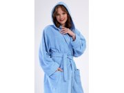 Ženski dugi frotir ogrtač s kapuljačom Plavasek.