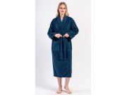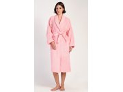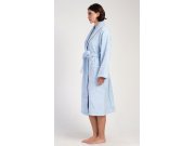 Ženski dugi frotirni ogrtač s ovratnikom poput šala Karolína. Ženski dugi ogrtač s ovratnikom poput šala, remenom za zatezanje i džepovima prikladan je nakon kupanja i za opuštanje kod kuće na kauču. Korišteni pamučni materijal ugodan je i mekan na dodir.