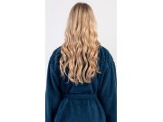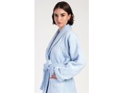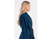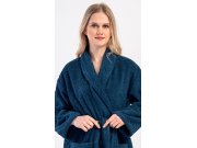 Ženski dugi frotir ogrtač s kapuljačom Plavasek.