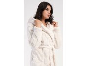 Ženski kratki soft ogrtač s kapuljačom Karolína. Ogrtač ima kapuljaču, praktične džepove i pojas za vezanje. Ukrašen je nježnim kariranim uzorkom. Ogrtač će vas ugrijati na putu iz kupaonice ili tijekom opuštanja na kauču, bit će vaš dragi pratitelj u hladnim danima. Korišteni soft materijal je nježan i mekan na dodir.